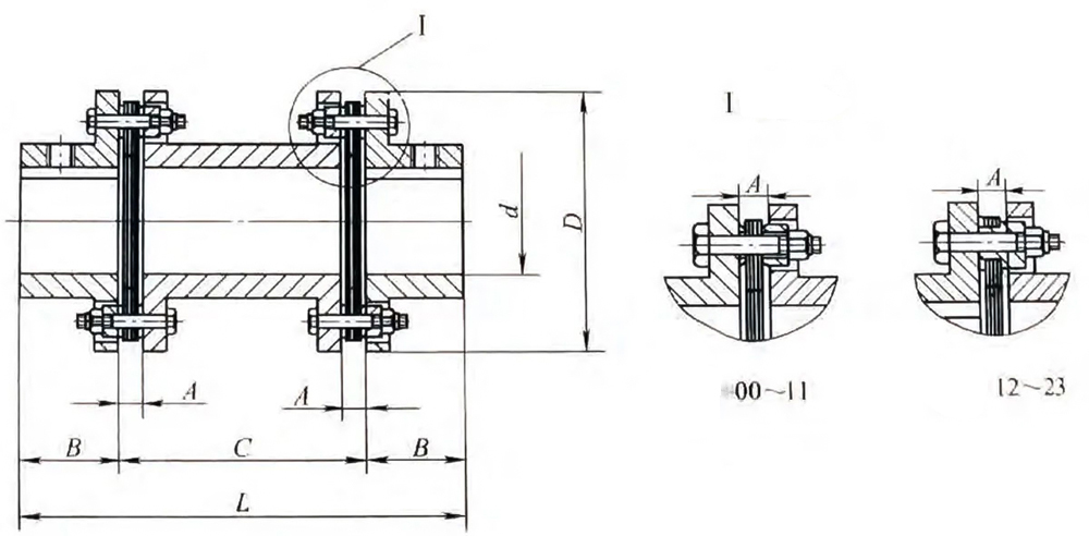 Die SM-Bindung verbindet eine elastische Doppelmembrankupplung. Dabei handelt es sich um eine Art flexible Kupplung, die zum Verbinden zweier Wellen verwendet wird, typischerweise zur Drehmomentübertragung, wobei ein gewisses Maß an Fehlausrichtung berücksichtigt wird. Diese besondere Kupplung verfügt über ein doppelt flexibles Membrandesign, das für verbesserte Flexibilität und Torsionssteifigkeit sorgt und sie daher für Anwendungen mit mittleren bis hohen Drehmomentanforderungen und mäßigen Fehlausrichtungen geeignet macht.