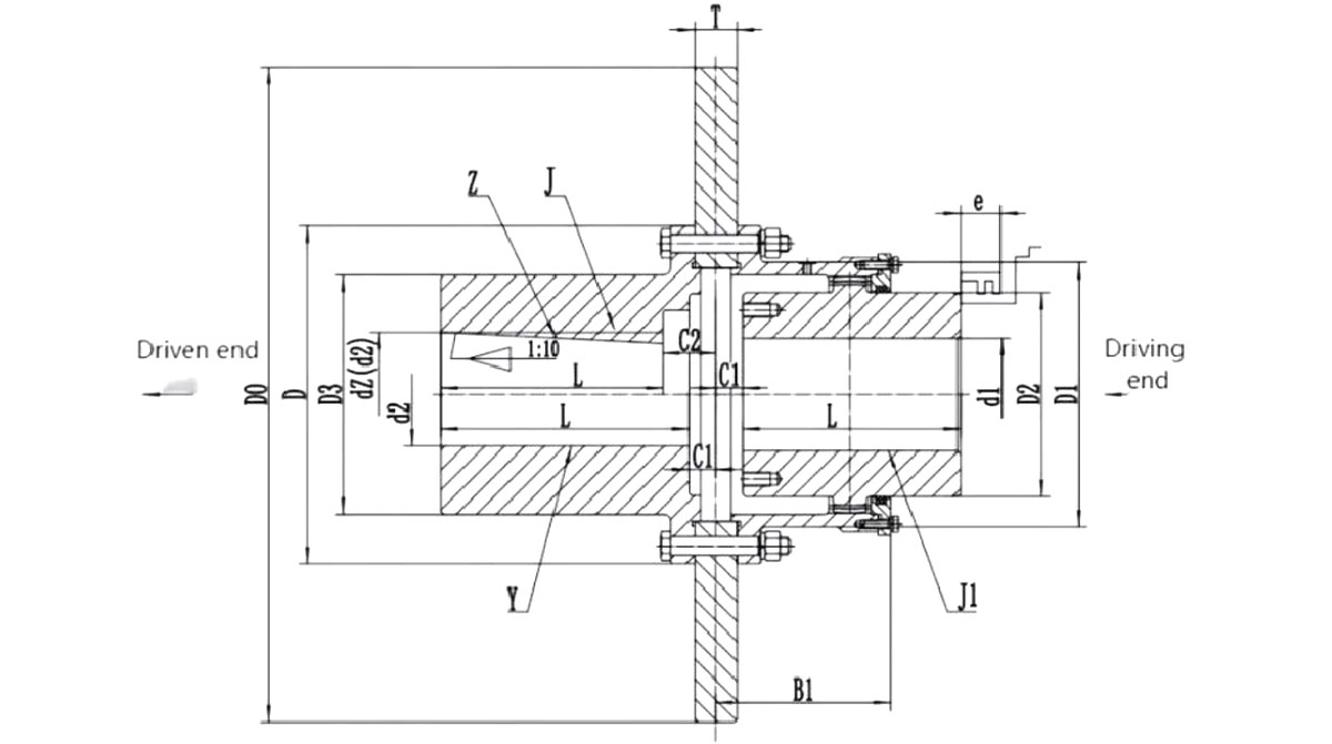 Unter normalen Umständen sollte die GAP-Kupplung ein Kupplungspaar vom Typ GBZ und GAZ sein, das äußere Ende der Zahnhülse ist mit der Zwischenwelle verbunden und die beiden Enden der Halbkupplung sind jeweils mit der Welle der Arbeitsmaschine und der Welle der Kraftmaschine verbunden. Da die Bremsscheibe mit der Halbkupplung verbunden ist, werden das Gewicht der Bremsscheibe und die Arbeitsbremslast sowie die Vibrationen vollständig von der Halbkupplung getragen, was die Eingriffsleistung der Trommelzähne beim Bremsen verbessert und sie daher für schwere Belastungen geeignet macht. Das Nenndrehmoment beträgt 630–112.000 N·m.