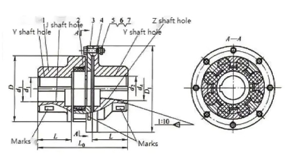 2. Das elastische Element ist in den konvexen Zahnspalt an der Außenkante der Stirnfläche der beiden Halbkupplungen eingebettet.