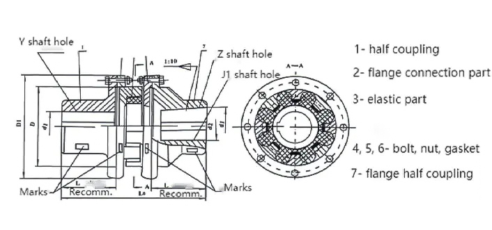 Grundkomponenten: Besteht hauptsächlich aus zwei Flansch-Halbassoziatoren mit hervorstehenden Klauen,Flanschverbindungsstücken, plum-förmigen elastischen Elementen, Bolzen, Muttern und Unterlegscheiben usw. Die plum-förmigen elastischen Elemente werden zwischen den hervorstehenden Klauen der beiden Halbassoziatoren platziert, um die Verbindung der beiden Halbassoziatoren herzustellen.