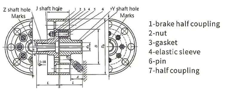 Zuhause / Produkte / Flexible Kupplungen mit nichtmetallischen elastischen Elementen / Stiftkupplung vom Typ TCL mit elastischer Bremsradhülse (Q/YZ32004X-2018)